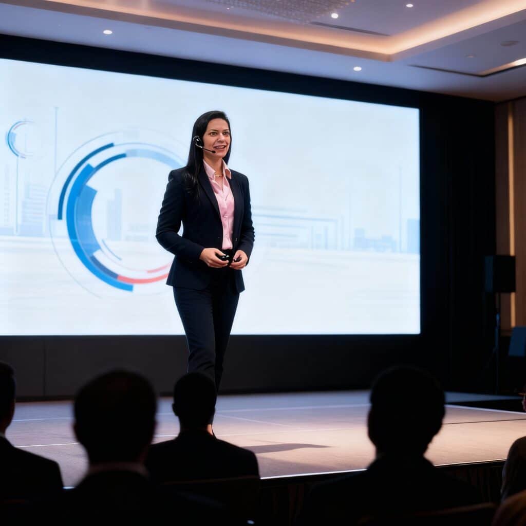 Palestras magnas (keynotes) para grandes eventos, workshops interativos in-company e participação em painéis de debate.